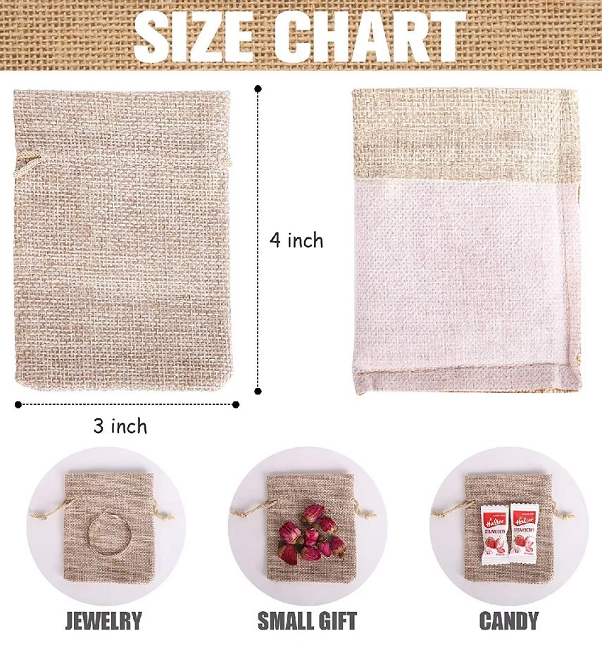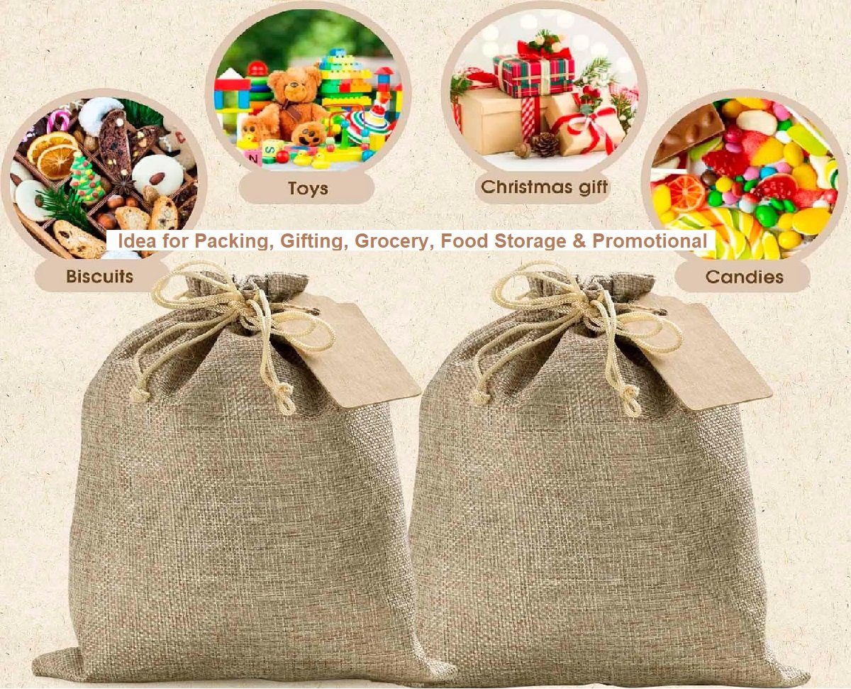 Burlap Bags & Jute Pouches feature a drawstring closure for quick and convenient storage of essential items. They are functional, attractive and economical. You can keep candies or jewelry, specs, or whatever you think as per the pouch size. They may have cotton strings or even jute stings as well. They come in various sizes and provide a natural, earthy but trendy look. Our Jute Drawstring Bags are an eco-friendly and stylish way to carry belongings. These lightweight yet durable natural fiber bags have a roomy interior. Perfect for the farmer’s market, beach, or park, these biodegradable bags are a sustainable alternative to plastic. Durable and versatile, our neutral tan jute drawstring bags complement any outfit and can be used for years to come. Carry your essentials in an earth-friendly bag – go green in style with our Jute Drawstring Bags and Jute Gift Bags.