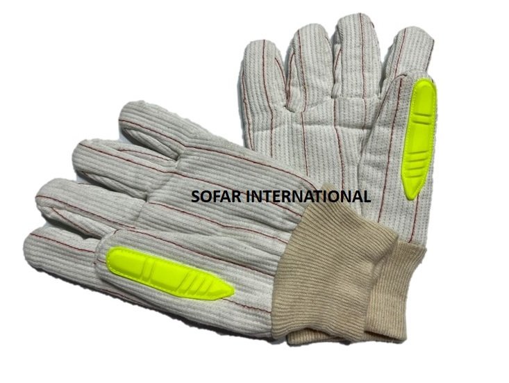 Corded Impact Gloves designed to protect your hands particularly the knuckles, back of hand, fingers from impacts, crushing forces, bumps, etc. These Glove are common use in construction, industrial work, construction, handling heavy tools, warehousing and mechanical work. Cotton Corded Impact Glove made with a heavy-duty corded palm and red stitching, reinforced thumb crotch, clute cut pattern and high-visibility spandex back. Protect your hands with impact-resistant gloves built for harsh environments. These gloves are an excellent choice for applications that require hand visibility for safety. Keep Your Workers Safe And Your Projects Moving with our Glove & Mitten