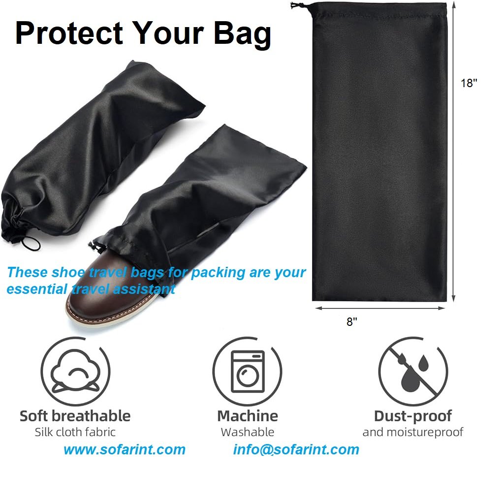 Shoe Bags are made from 100% chemical-free undyed and unbleached cotton Fabric. We are producing the high quality Cotton Shoe Bags, Boot Bags, Dust Bags, Flannel Drawstring Bags for dust protection and stylish storage in your suitcase or wardrobe. Wholesale rate, Customizable logo printing and embroidery options available. Shoe Bags provide a great shoe storage option. These Shoe Bags keep shoes cozy protected from dirt, dust and damage in the closet. Their unique design includes a roomy interior, high neck and tight drawstring closure to keep dust out. Our Shoe Bags provide museum quality storage protection for your shoes and are perfect for travel. Our Storage Bags are lightweight, breathable, and feature strong stitching to make sure they are durable enough to handle long-term use and won’t easily tear. They allow you to store anything ranging from shoes, sneakers, purses, and handbags making this reusable bag set ideal for any home.