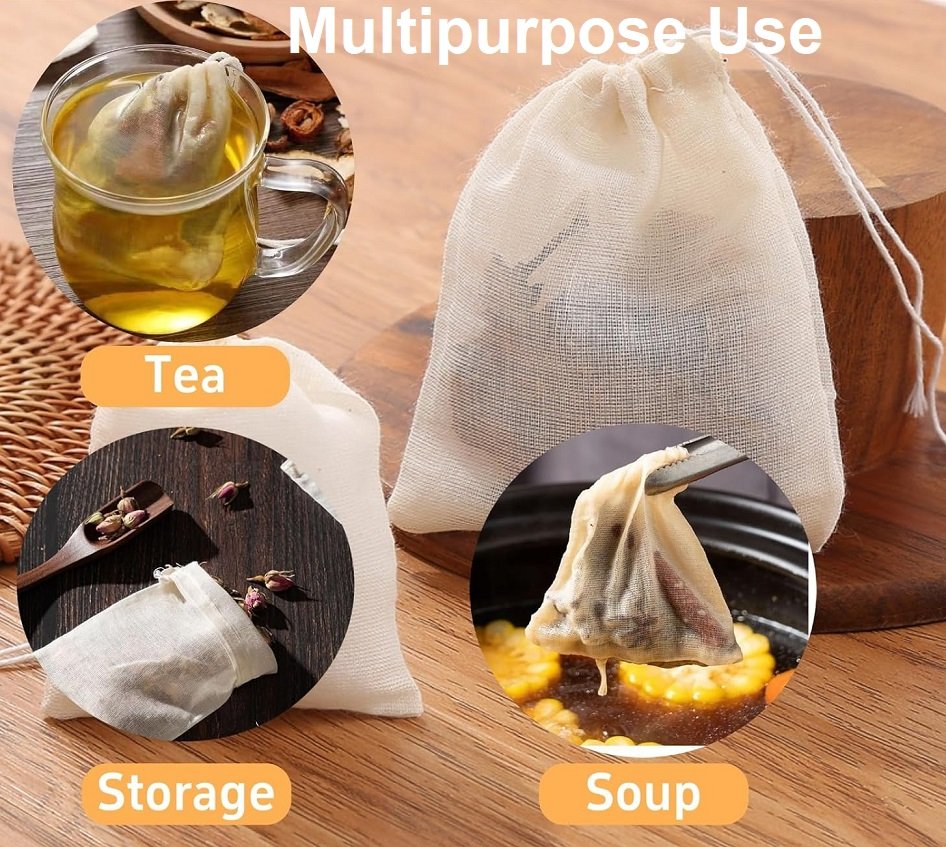 - They’re always made with a drawstring to prevent tea, flowers or herbs from accidentally leaving the bag.