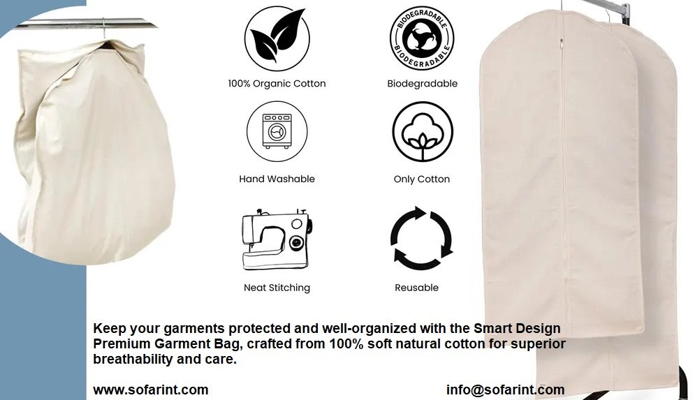 Suit Bag, Coat Cover Bag, Preservation Bag and Garment Cover are made with Cotton Fabric, Canvas Fabric, Twill Fabric & Non Woven. These Suit Cover Bags are sturdy and durable, made cotton fabric to preserve your suits, jacket for dust. Cotton Suit Cover Bags are biodegradable, environmentally friendly and completely natural. Our Preservation Bags are ideal for storing Coats, Suits, Jackets, Shirts, Skirts, Blouses, Short Dresses & Sherwanis etc. There is a grommet provided at the bottom that can be looped over the hanger for easy storage and even transport. These Cotton Suit Bags & Garment Bags keep clothes safe from dust, and prevent the garment degrading quickly. It is easy to carry, store, and transport clothes with these covers. Sofar International offers custom hem colors as well as many choices buttons and Zip. Custom Printing and Tags are available.