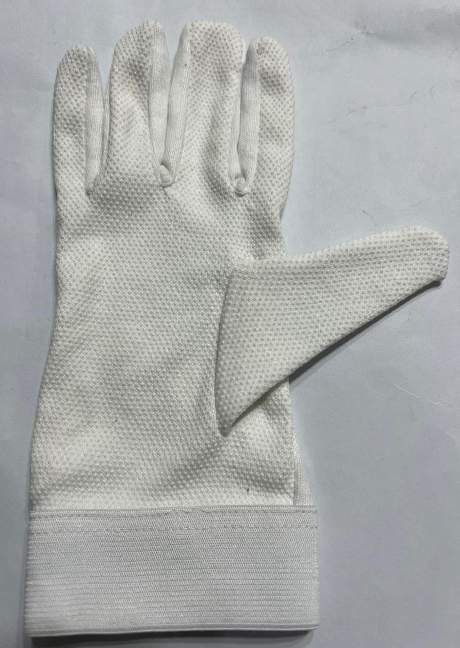 Keep your hands safe with our cotton safety gloves. Bleached for clean appearance and designed with PVC dots on one side for extra grip. Cotton Interlock white bleach gloves with white mini pvc dots with 3-seams on back Enhance grip, performance, durability and comfort. We are manufacturing and export Interlock Gloves Nylon Gloves PVC Dotted Gloves Drill Gloves Terry, Mitten Gloves Polyester Gloves Jersey Gloves & Seamless Knitted Gloves. Welcome you to choose the interesting item and send us your inquiry.