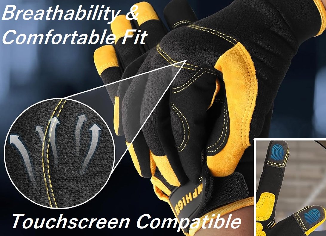 Multi-Purpose Safety Gloves for Construction & Mechanics Touchscreen Compatible Anti-Slip & Anti-Vibration Performance Features