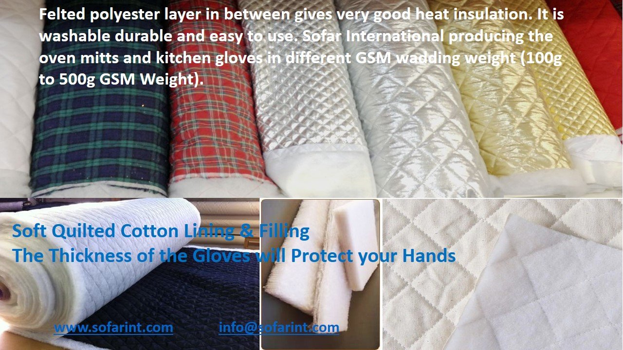 Eco-Friendly, Heat-Resistant Oven Mitten & Glove Offering Protection up to 100°F, lowest Cold to -50°F. Well,  Protect your hands, wrists from burns in all directions, Safer and more Comfortable. Felted polyester layer in between gives very good heat insulation. It is washable durable and easy to use. Oven Glove is available in different colors and printed fabric. Save your hands and arms from heat and wear these gloves while you’re baking, cooking, grilling or handling some hot stuff in your kitchen.