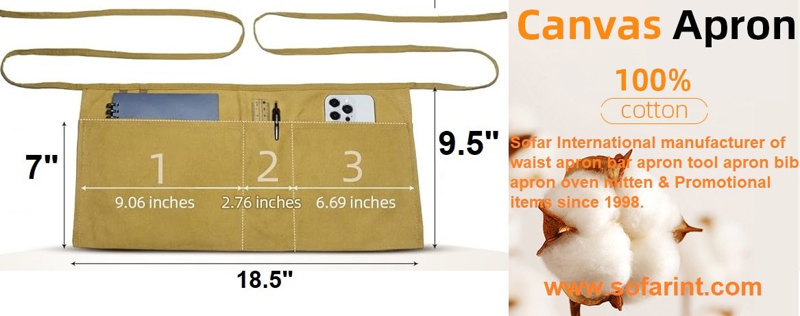 Size: 9.5″ x 18.5″ cm and Customized – Style: Waist Apron & also with pocket