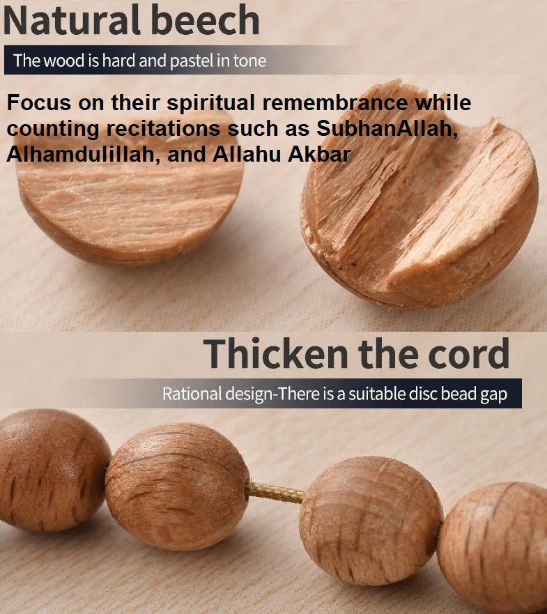 Elevate your spiritual journey with this handmade wooden Tasbih 33 Beads & 99 Beats